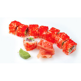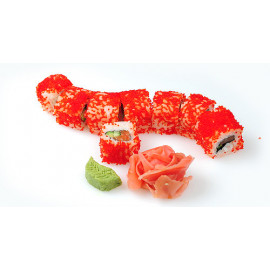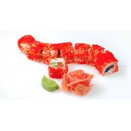 крабовий кейк, огірок, японський майонез, в червоній ікрі тобіко..